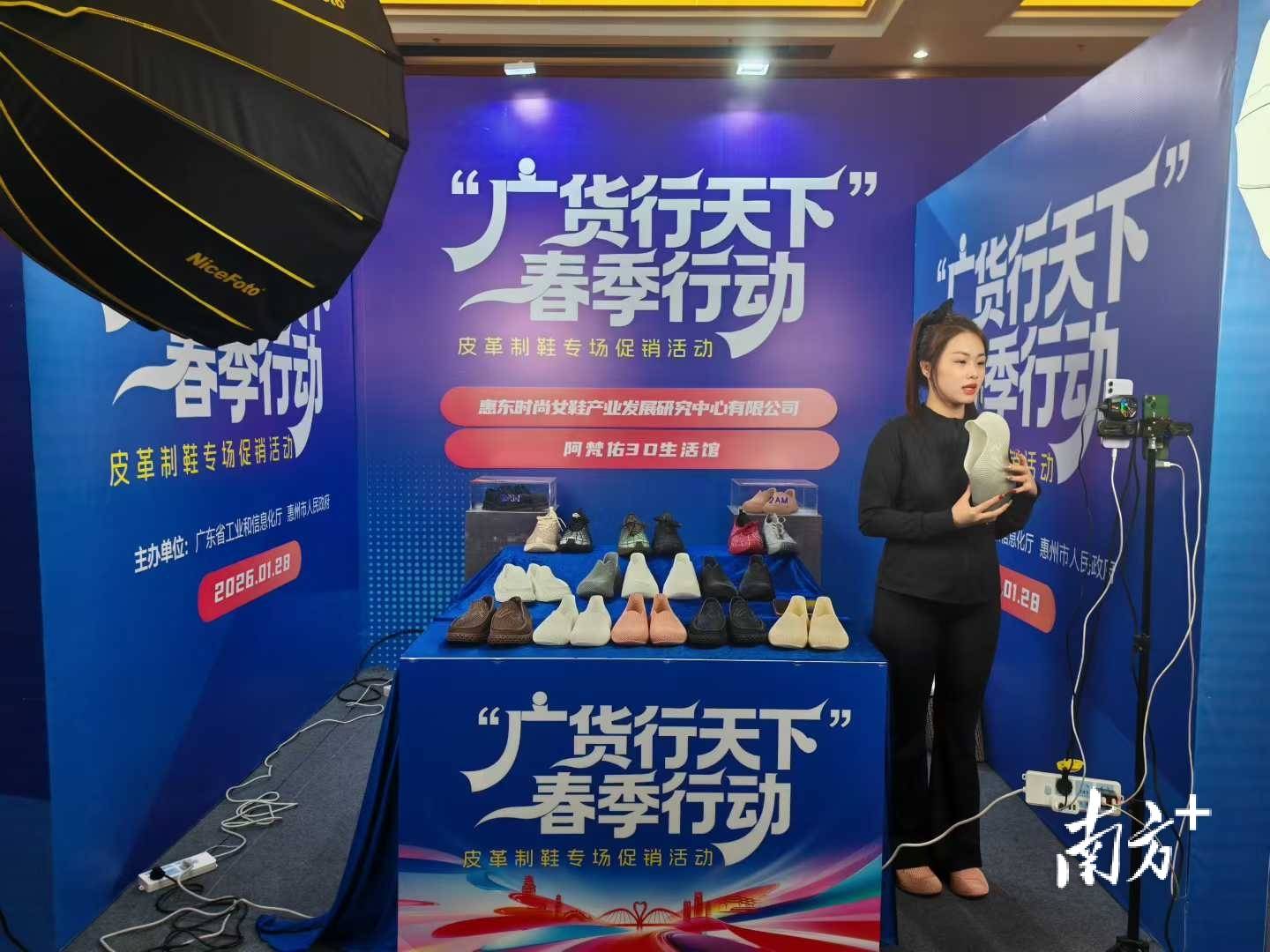 1月28日,“广货行天下”春季行动皮革制鞋专场促销活动在惠州举行。活动聚焦广东皮革制鞋产业,通过政企联动、平台参与和直播展示等方式,把一批兼具品质、创新与性价比的“广东好鞋”推向全国乃至全球市场。