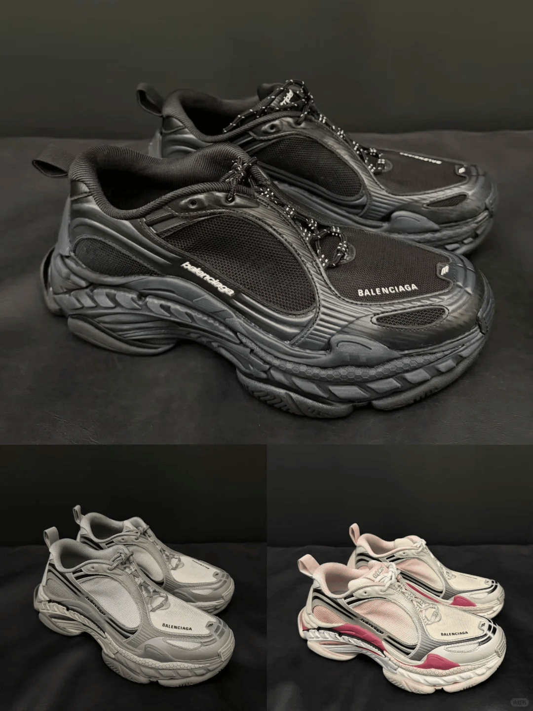 BALENCIAGA的Triple S作为老爹鞋的经典代表,夸张造型自带话题度,一直是潮流圈的热门单品。这款鞋延续了品牌一贯的先锋设计,厚重的鞋底搭配层次感极强的鞋面,视觉冲击力拉满,轻松打造高街氛围感。不过其短板也较为明显,欧美鞋码对国人脚型偏不友好,容易出现磨脚、尺码偏差的问题,且鞋底偏硬,长时间穿着舒适度一般,同时偏高的定价也让它更适合追求极致个性、不介意性价比的潮流玩家。